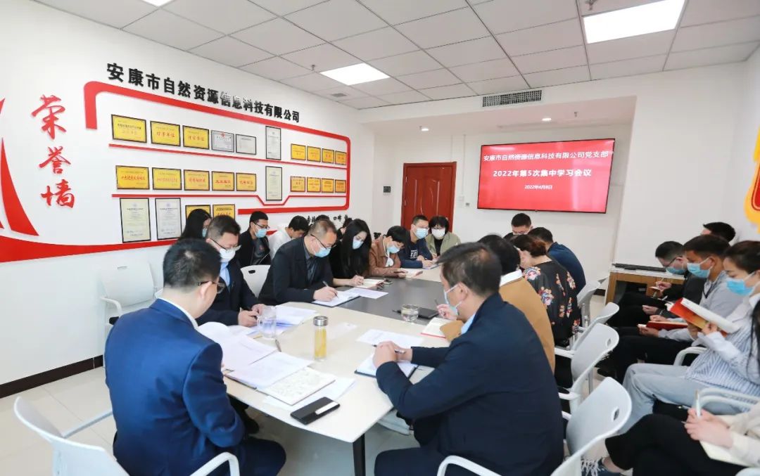 4月8日上午,安康市自然資源信息科技有限公司黨支部召開第五次集中學習(擴大)會議,迅速傳達學習中省市國資系統工作暨國資國企改革三年行動推進會和2022年度全市國資系統黨建暨紀檢監察工作會議精神,安排部署2022年度公司重點工作。