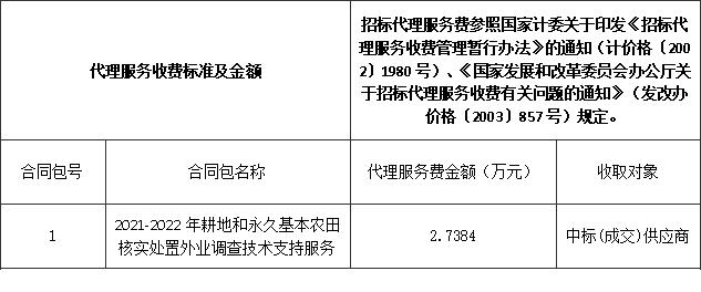 2021-2022年耕地和永久基本農(nóng)田核實處置外業(yè)調(diào)查技術(shù)支持服務(wù)中標(biāo)(成交)結(jié)果公告